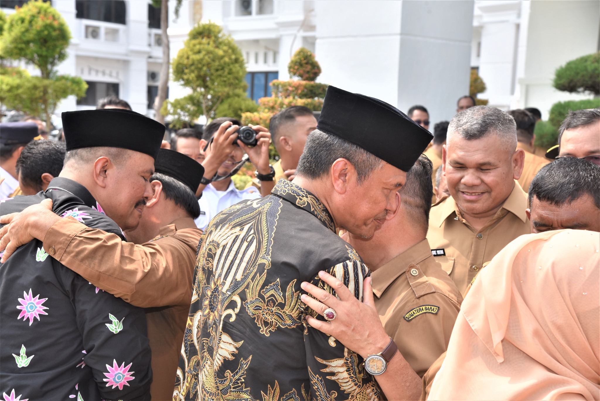 Apel ditutup dengan doa dan bersalaman bersama semua ASN dan Non-ASN di halaman balaikota, terlihat banyak yang menitikan air mata, termasuk Genius Umar didampingi istri dan Mardison Mahyuddin didampingi istri. (mas)