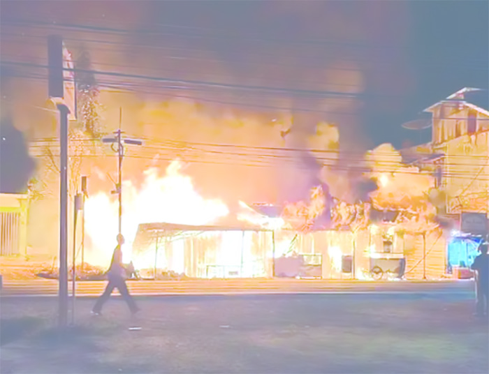 SIJUNJUNNG, KP — Kebakaran hebat melanda kawasan Pasar Sungai Tambang, Nagari Kunangan Parit Rantang, Kecamatan Kamang Baru, Kabupaten Sijunjung, Kamis malam (5/3). Peristiwa yang terjadi saat warga sedang melaksanakan salat tarawih tersebut menghanguskan tiga kedai dan satu rumah permanen dengan taksiran kerugian mencapai Rp300 juta.