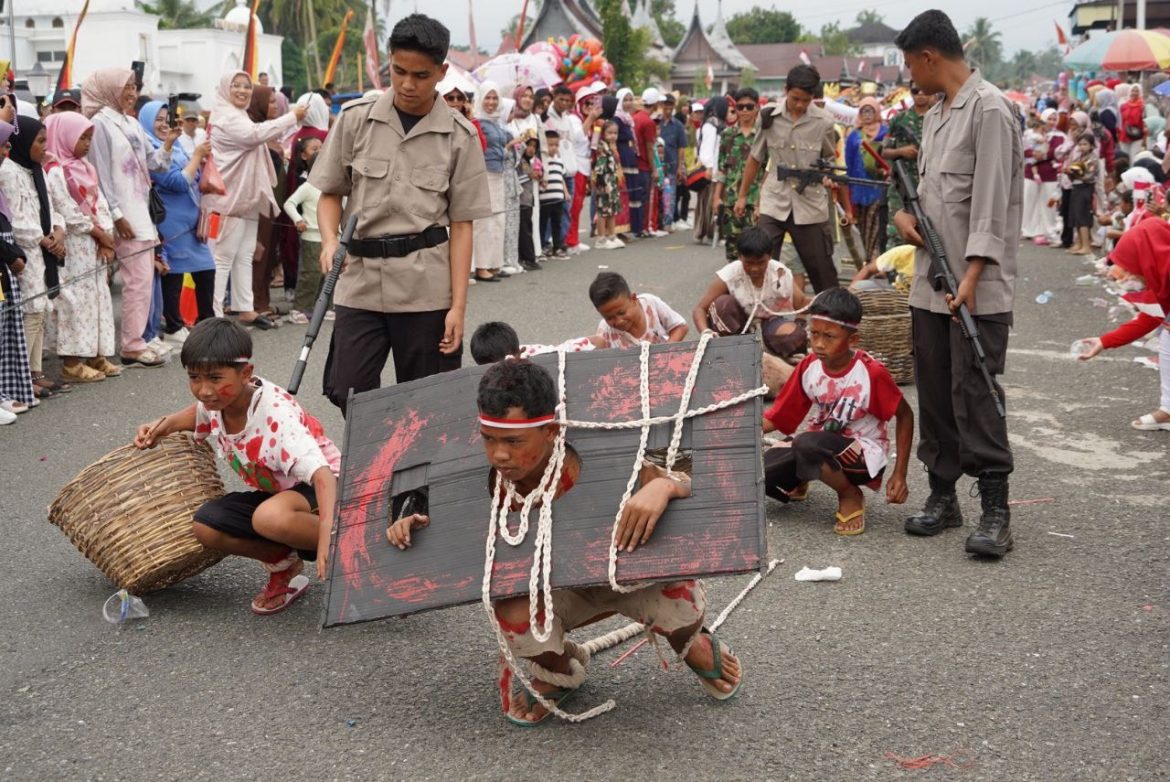 PADANG ARO, KP – Pawai Alegoris menjadi penutup rangkaian perlombaan yang dilaksanakan dalam memeriahkan Hari Kemerdekaan Republik Indonesia ke-79 di Kabupaten Solok Selatan.