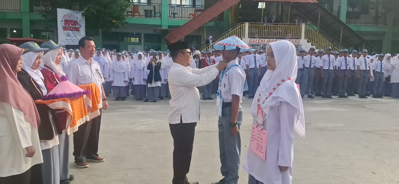 PADANG, KP – Kepala MAN 1 Padang Afrizal, secara resmi membuka acara Masa Ta’aruf Siswa Madrasah (Matsama) di lapangan upacara madrasah, Senin (15/7). Acara tersebut ditandai dengan pemasangan tanda peserta Matsama kepada dua perwakilan siswa berupa topi dan papan nama.