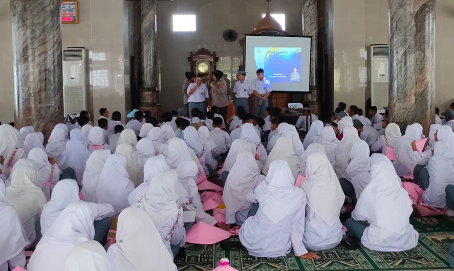 PADANG, KP – Peserta Masa Ta’aruf Siswa (Matsama) MAN 1 Padang mengikuti materi pencegahan judi online, narkoba, etika digital, kekerasan, bullying, dan pelecehan seksual, di Masjid Raya Durian Tarung, Selasa (16/7). Materi tersebut disampaikan Bripka Hendra Saputra dan Aipda Fitria Zahara dari Polresta Padang.
