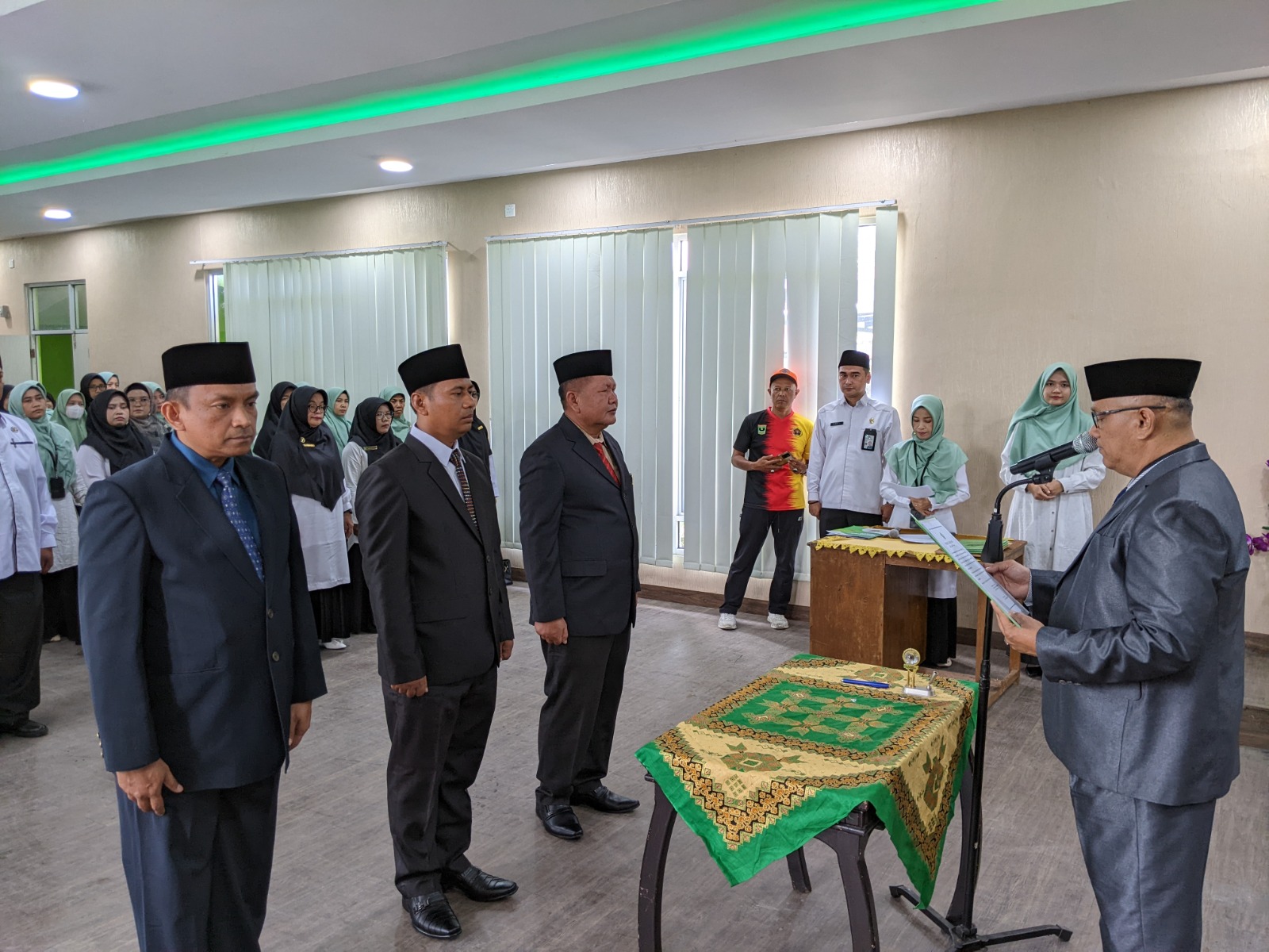TANAH DATAR, KP – Kepala Kantor Kementerian Agama (Kemenag) Kabupaten Tanah Datar, H. Amril, mengambil sumpah dan melantik tiga pejabat pengawas eselon IV, di Aula Ikhlas Beramal Kantor Kemenag Tanah Datar, Senin (15/7).