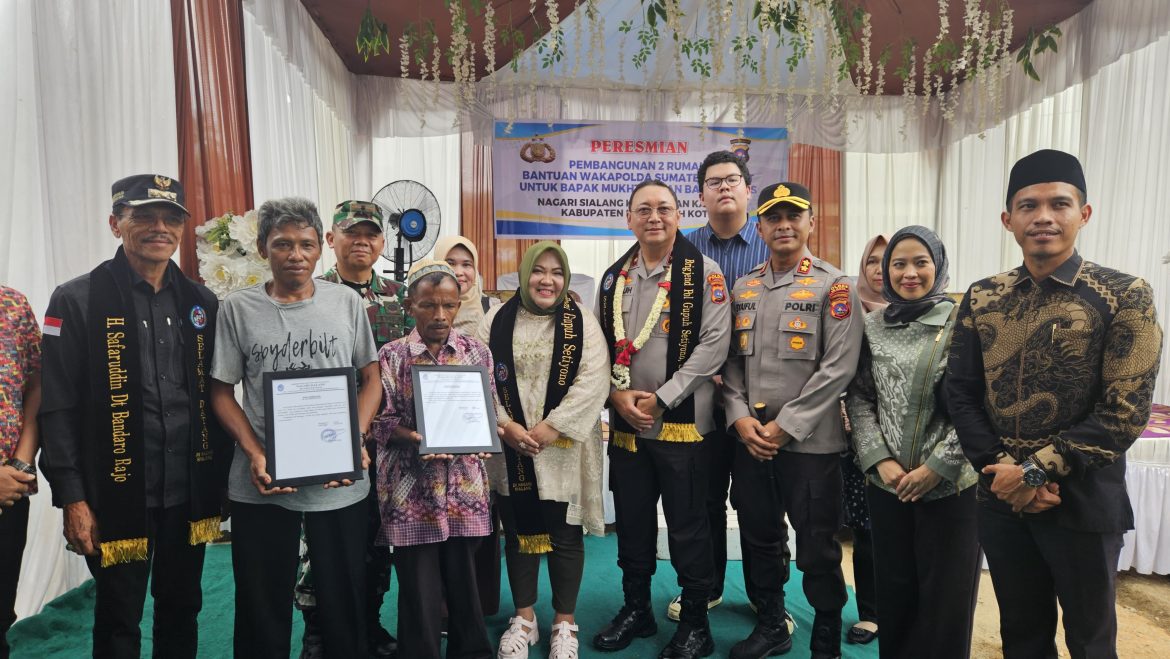 Sementara, Bupati Safaruddin mengucapkan terima kasih kepada wakapolda dan keluarga yang membantu pembangunan dua unit rumah layak huni di Nagari Sialang. Menurutnya, di Kabupaten Limapuluh Kota terdapat sekitar 3.000 rumah tidak layak huni yang harus segera dibangun menjadi layak huni.