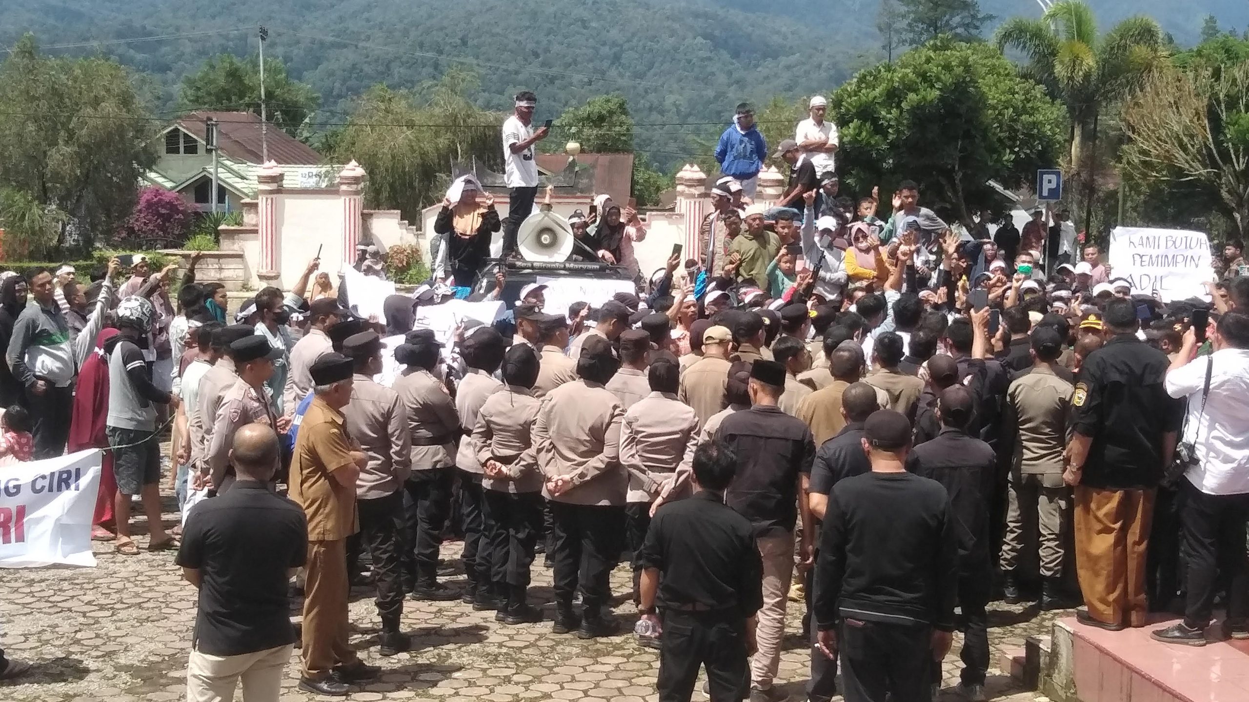 Setelah itu, massa melanjutkan aksinya ke kantor bupati. Bupati Solok Epyardi Asda menyambut langsung kedatangan para pendemo dan menjelaskan alasan di balik penonaktifan sementara walinagari Gantung Ciri Hendri Yudha. Menurut bupati, penonaktifan tersebut berdasarkan hasil temuan audit investigasi oleh Inspektorat.