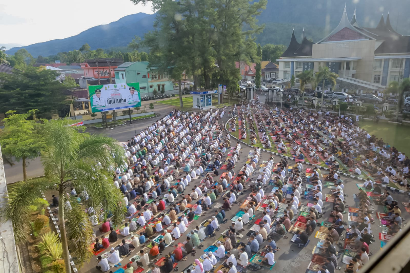 LUBUK SIKAPING, KP – Ribuan warga memadati halaman Kantor Bupati Pasaman untuk melaksanakan Salat Iduladha 10 Dzulhijah 1446 H, Jumat (6/6). Bertindak sebagai khatib, Dr. Syaiful Amin, dosen UIN Bukittinggi, dan sebagai imam, Akmal Nurhakim, Imam Masjid Agung Islamic Center Lubuk Sikaping.