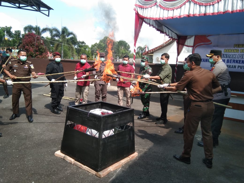 “Pemusnahan dilakukan untuk menghindari penyalahgunaan atau penyimpangan terhadap barang bukti yang telah berkekuatan hukum tetap,” kata Burhan.