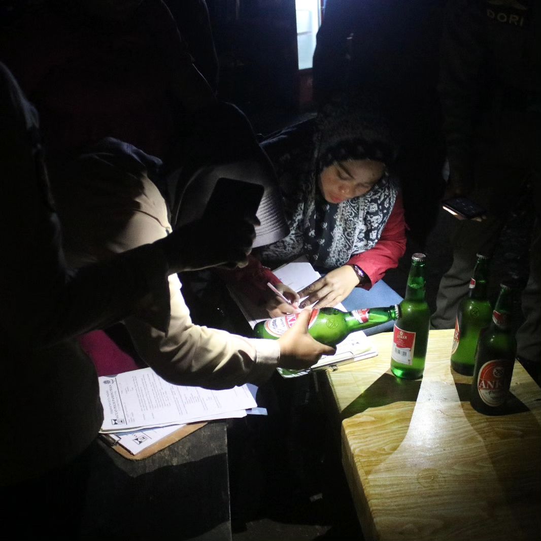 “Dalam pengawasan terhadap izin usaha kafe karaoke, kita dapati tiga tempat usaha yang berada di kawasan Kecamatan Padang Barat dan kawasan Padang Selatan menyediakan minol golongan A dan B, namun pemilik usaha tidak memiliki izin edar sesuai aturan. Maka, kita amankan barang bukti sebanyak 24 botol dan pemilik kita berikan surat panggilan serta kita amankan satu orang wanita tanpa memiliki identitas berada di sana,” kata Kabid P3D Satpol PP Kota Padang, Rio Ebu Pratama.