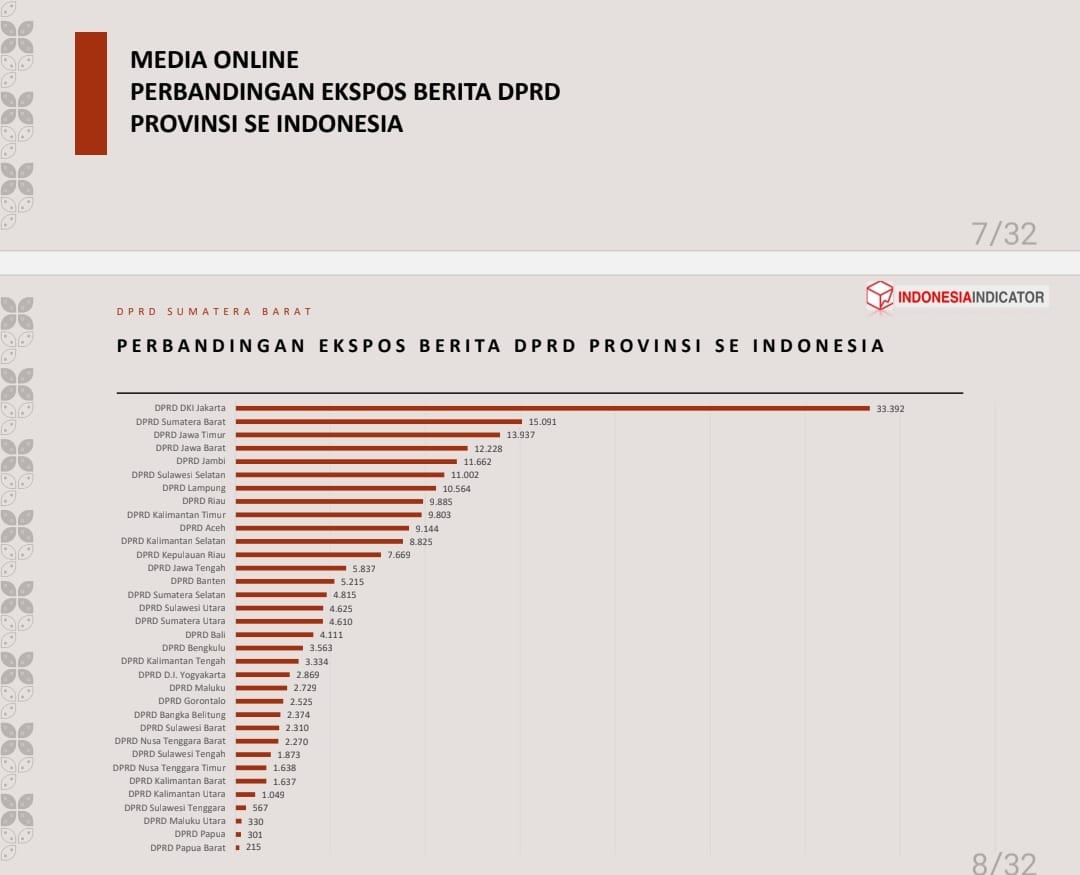 “Peran, fungsi dan kegiatan anggota DPRD Sumbar telah turut serta memajukan pekembangan publikasi dan branding DPRD Sumbar secara nasional. Saat ini sebaran publikasi kegiatan DPRD Sumbar berada pada rangking 2 secara nasional dengan jumlah sebaran berita 15 ribuan lebih berbanding DPRD DKI Jakarta 33 ribuan. Sini dilakukan DPRD Sumbar guna ikut serta dalam menjaga marwah, harga diri dan martabat masyarakat Sumbar secara nasional,” ucapnya. (*)
