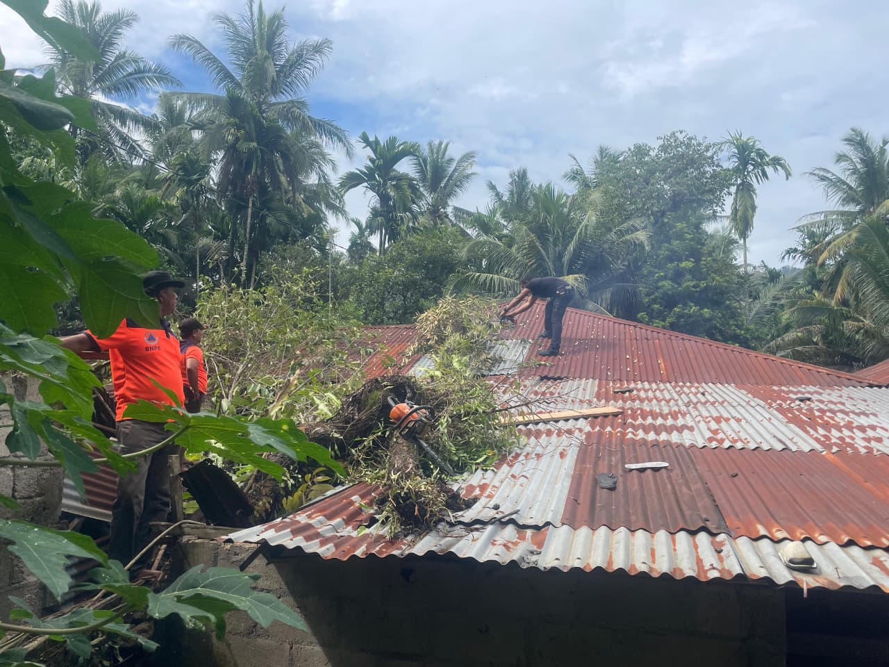 Ia menambahkan, selain menimpa rumah, pohon tumbang juga sempat menutup akses jalan warga.