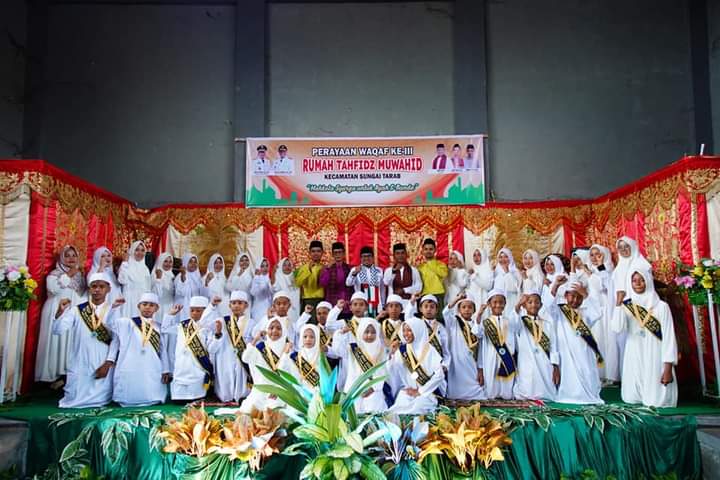 Sementara, ketua pelaksana Benny Apero yang juga anggota DPRD Tanah Datar mengatakan, Perayaan Waqaf ke-III Rumah Tahfidz Muwahid diikuti 18 orang santri. Ia berharap ke depan akan lebiuh banyak lagi generasi muda di Tanah Datar, khususnya di Sungai Tarab yang menjadi penghafal Al-Qur’an.