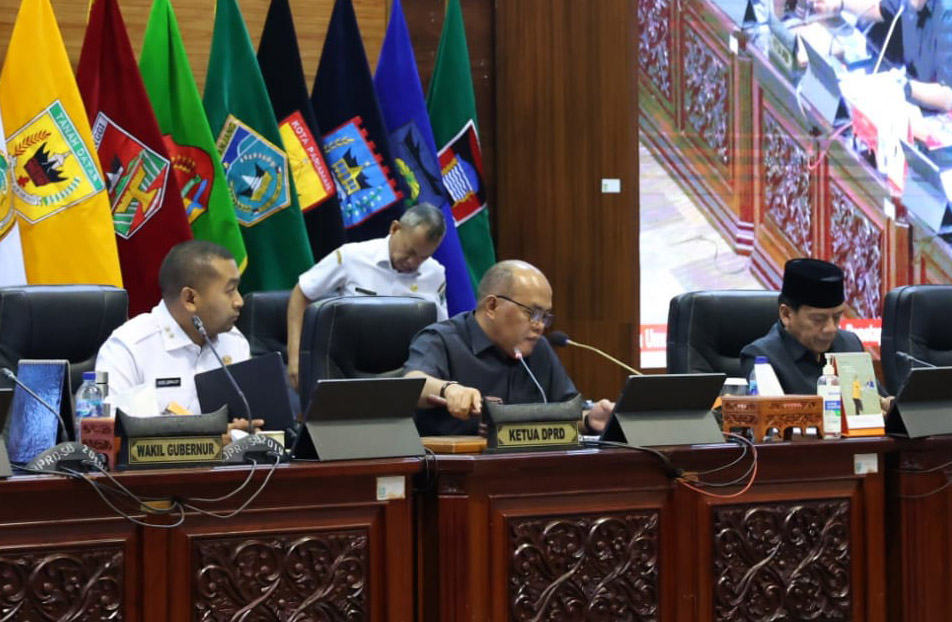 PADANG, KP – Gubernur Sumbar menyampaikan jawaban atas pandangan fraksi di DPRD Sumbar terkait Ranperda tentang Perubahan Ketiga atas Perda nomor 8 tahun 2016 tentang Susunan Organisasi Perangkat Daerah dan Ranperda Pengelolaan Sampah. Agenda ini dilangsungkan dalam rapat paripurna di ruang sidang utama DPRD Sumbar, Rabu (11/10).