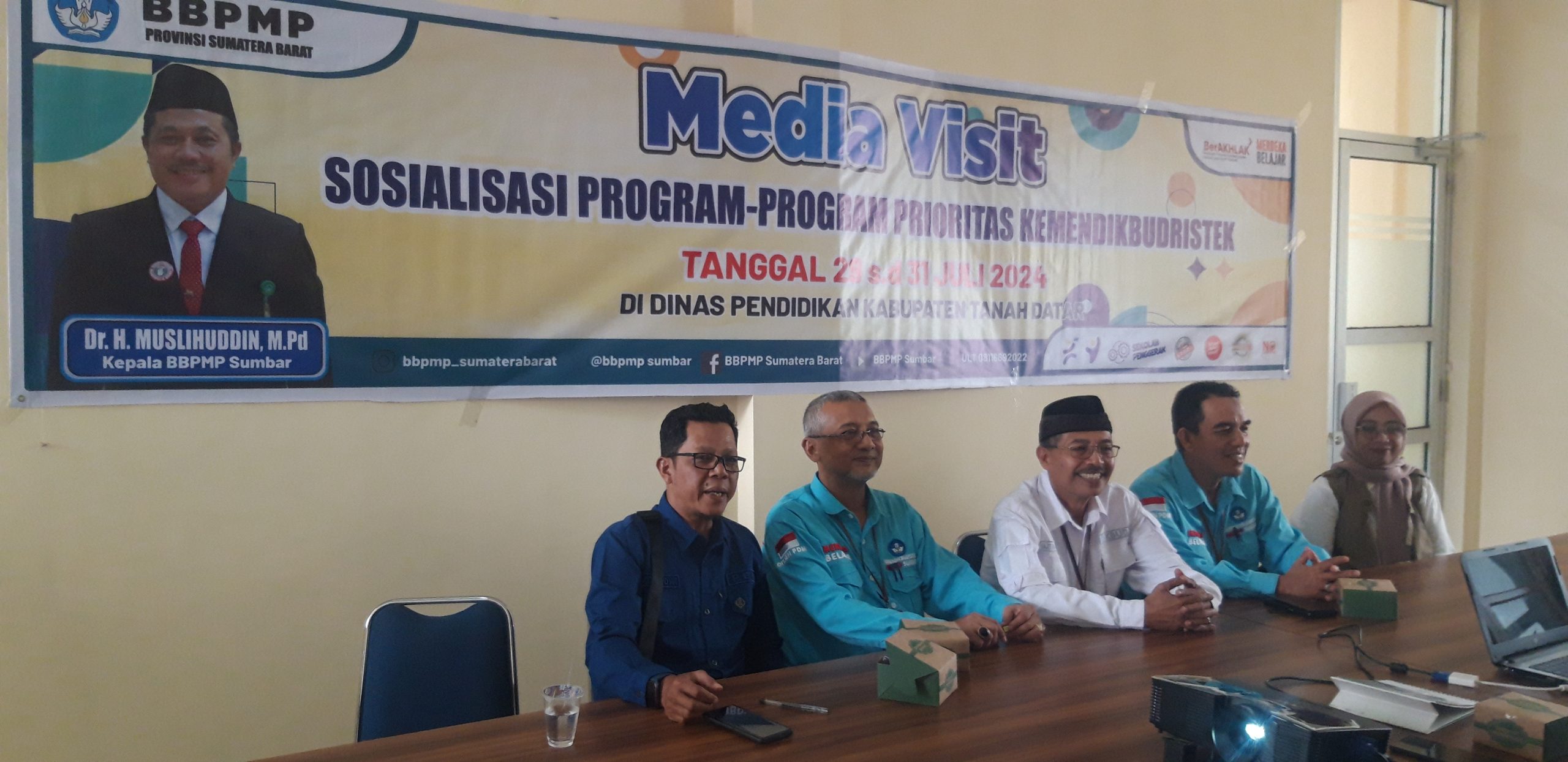 TANAH DATAR, KP – Balai Besar Pengembangan Mutu Pendidikan (BBPMP) Sumbar menyosialisasikan program-program prioritas Kementerian Pendidikan, Kebudayaan, Riset, dan Teknologi (Kemendikbudristek) kepada awak media di Tanah Datar, Rabu (31/7).