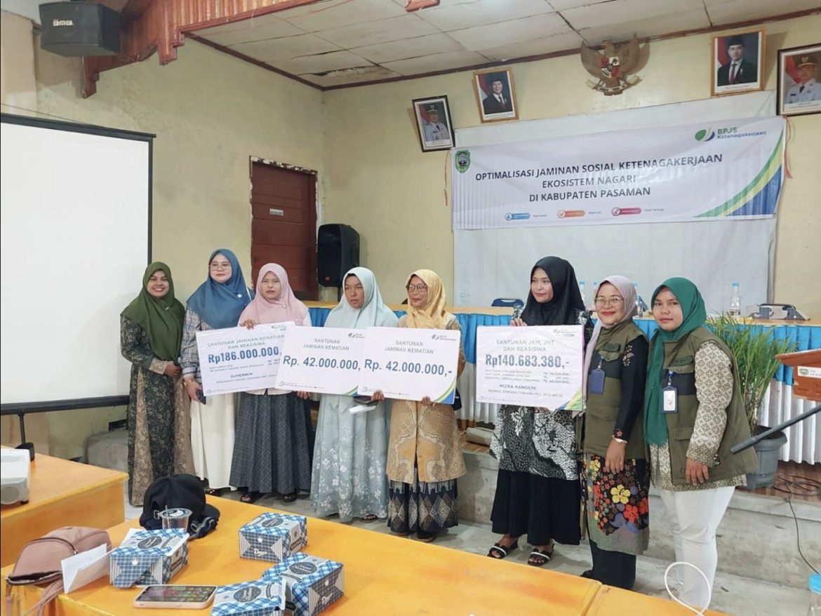 PASAMAN, KP – BPJS Ketenagakerjaan Kantor Cabang Pembantu (KCP) Pasaman menyalurkan santunan kepada empat ahli waris peserta aktif yang meninggal dunia, dengan total nilai mencapai Rp410,6 juta. Seluruh penerima merupakan warga Kecamatan Dua Koto, Kabupaten Pasaman.