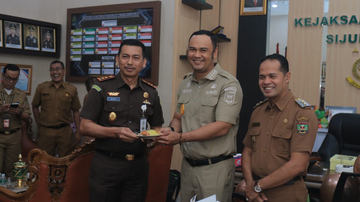 SIJUNJUNG, KP – Bupati Sijunjung Benny Dwifa Yuswir dan Wakil Bupati Iraddatillah bersama sejumlah kepala OPD mendatangi kantor Kejaksaan Negeri (Kejari) Sijunjung dan memberi kejutan kepada Kepala Kejaksaan Negeri (Kajari) Sijunjung Adi Nuryadin Sucipto, Senin (18/12).
