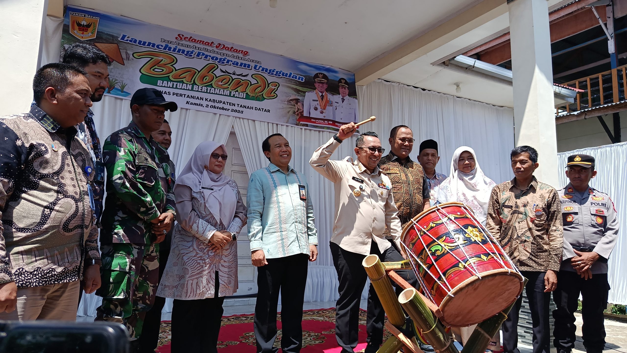 TANAH DATAR, KP – Bupati Tanah Datar, Eka Putra, meluncurkan Program Unggulan Babendi (Bantuan Bertanam Padi) di Balai Penyuluh Pertanian Sungai Tarab, Kamis (2/10). Peluncuran program ini bertujuan melanjutkan komitmen Pemkab Tanah Datar dalam meningkatkan sektor pertanian, khususnya produksi padi.