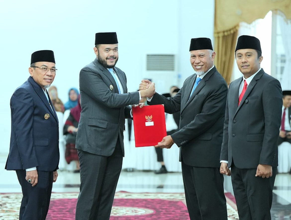 Gubernur Mahyeldi mengucapkan selamat kepada 17 kepala daerah dan wakil kepala daerah se-Sumbar yang menerima SK pasca dilantik Presiden RI 20 Februari 2025 lalu.