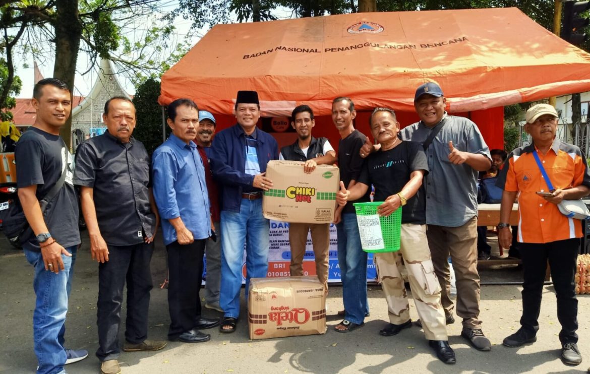 PAYAKUMBUH, KP – Mantan Bupati Limapuluh Kota periode 2016-2021, Irfendi Arbi memberikan bantuan untuk korban bencana banjir bandang, ke Posko Balai Wartawan Luak Limopuluah Peduli, Sabtu (18/5).