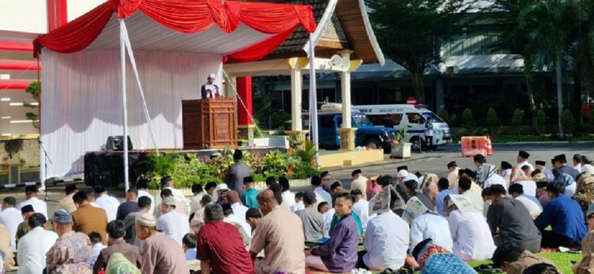 PADANG, KP – Menjadi Khatib Salat Idul Fitri 1445 H di Halaman Kantor Gubernur Sumbar, Wakil Ketua DPRD Sumbar, Irsyad Syafar ajak masyarakat tingkatkan rasa empati kepada saudara-saudara yang tertimpa musibah. Dengan rasa empati yang kuat, maka semua bisa merasakan kebahagiaan pada momentum lebaran.