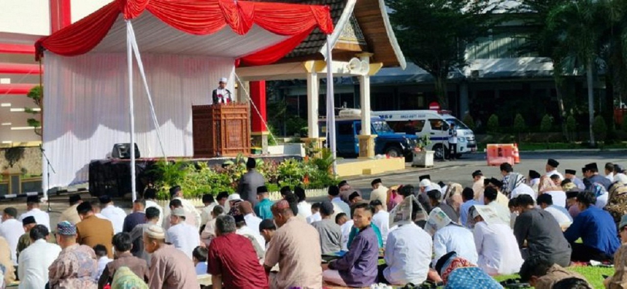 “Berbahagia pada hari raya Idul Fitri adalah Sunnah, tidak ada yang boleh bersedih. Jika ada saudara-saudara kita yang berduka ditimpa musibah di beberapa kabupaten dan kota, mari ber empati secara moril dan materil agar semua bisa tersenyum pada momentum lebaran,” ujar Irsyad Safar dalam ceramahnya, Rabu (10/4).