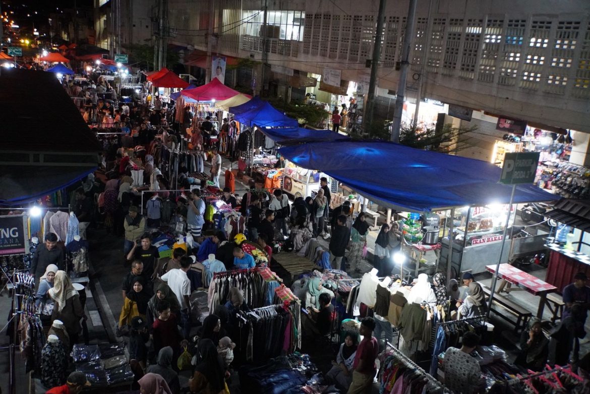 Pantauan di lapangan, Minggu (31/3) malam, Pasar Pusat ramai oleh pedagang dadakan yang berjualan di pelataran luar gedung pasar. Warga membludak mencari kebutuhan Lebaran mereka.