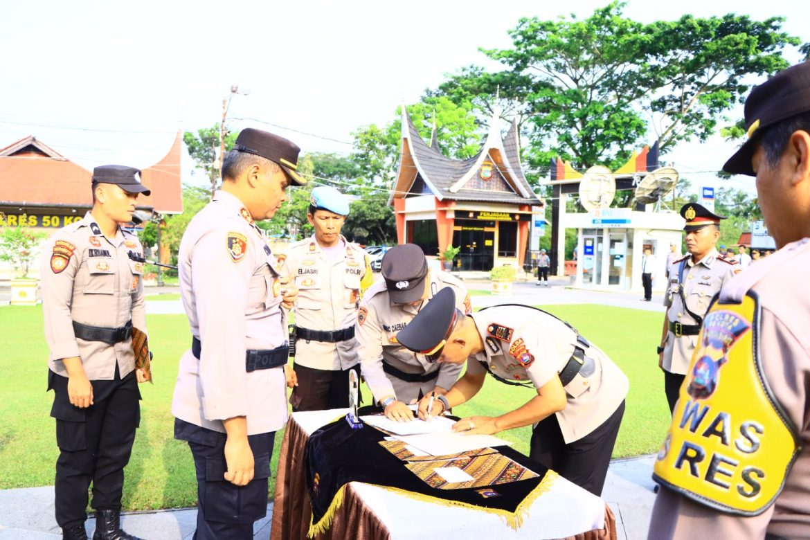 Kapolres juga menyampaikan ucapan terima kasih kepada pejabat lama atas dedikasi dan prestasi selama bertugas di Polres 50 Kota, serta memberikan selamat bertugas di tempat yang baru.