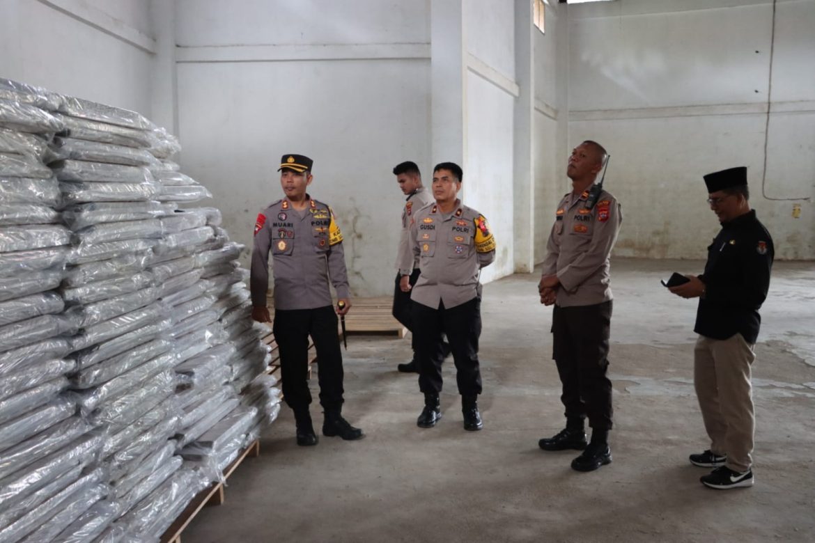“Saya berpesan agar personil yang menjaga gudang bahan logistik KPU meningkatkan kewaspadaan dan menjaga kesehatan,” ujar AKBP Muari.
