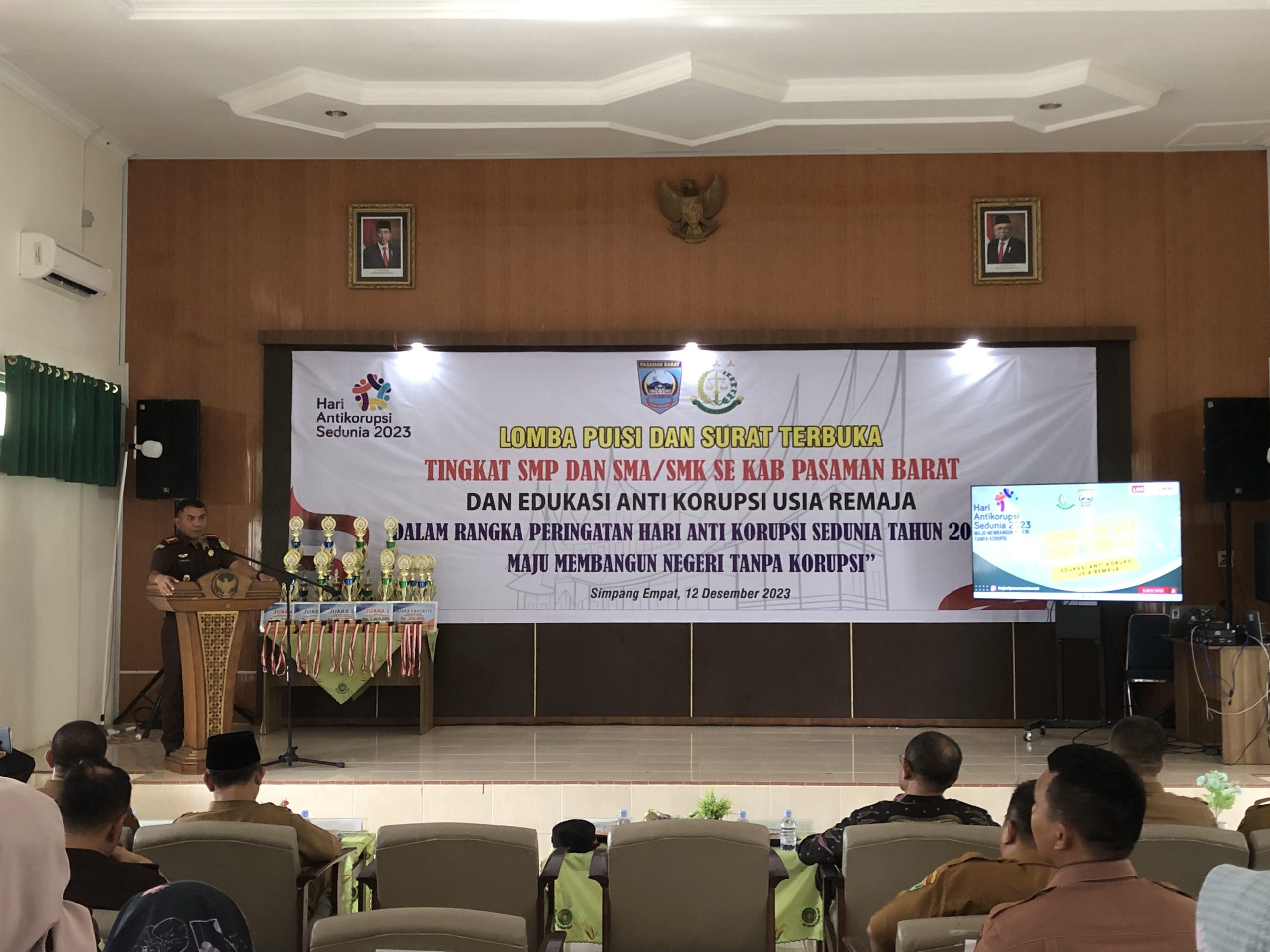 SIMPANG EMPAT, KP – Kejaksaan Negeri (Kejari) Pasaman Barat (Pasbar) menggelar lomba puisi dan surat terbuka dalam peringatan Hari Anti Korupsi Sedunia (Hakordia) tahun 2023 tingkat SMP, SMA, dan SMK se Kabupaten Pasaman Barat.