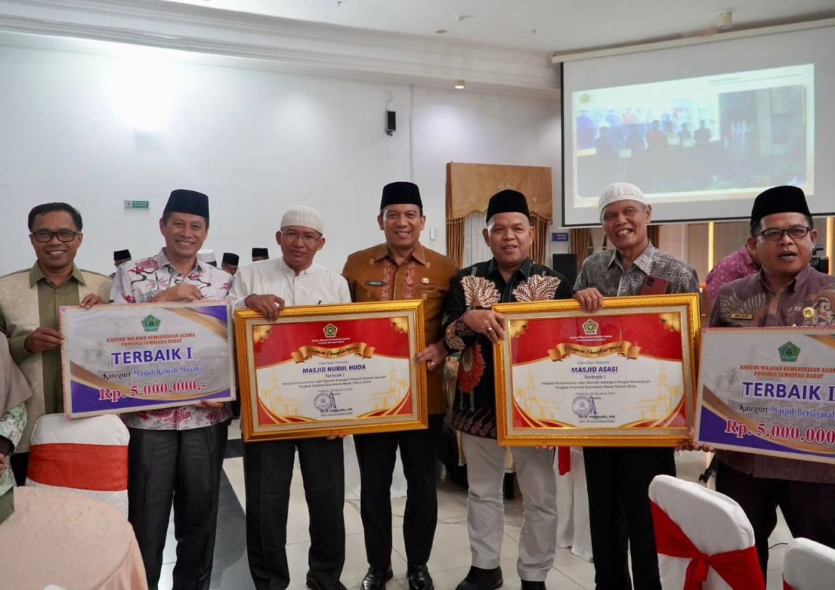 Anugerah ini diserahkan Gubernur Sumbar Mahyeldi kepada Penjabat (Pj) Wali Kota Padang Panjang, Sonny Budaya Putra, bersama Pengurus Masjid Asasi, Aswir Rasyidin Datuak Panjang dan Pengurus Masjid Nurul Huda, Ade Sehabudin di Auditorium Gubernuran Sumbar, Rabu malam (28/8).