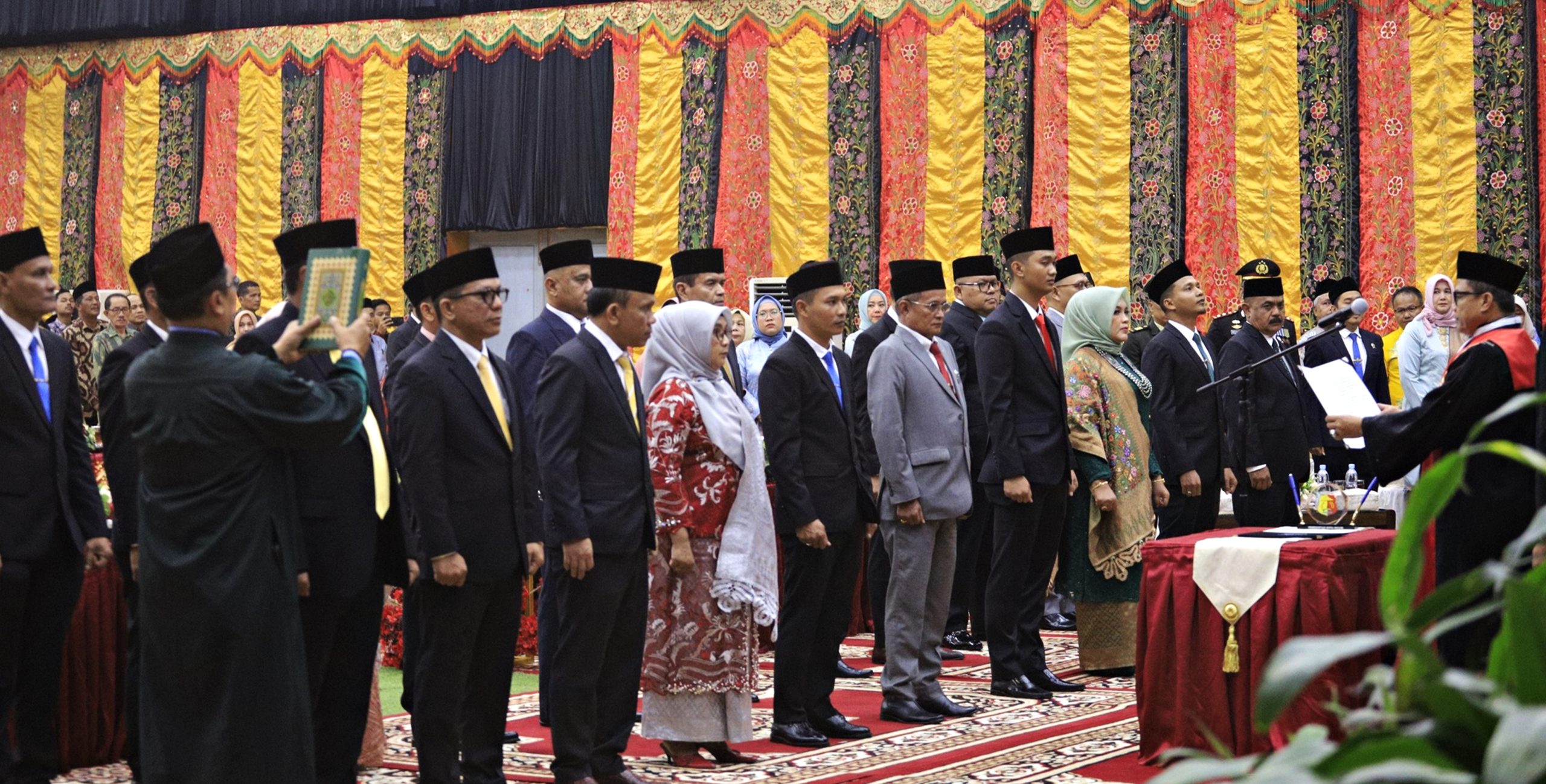 GEDUNG Kubuang Tigo Baleh di Kota Solok dipenuhi oleh rasa haru, kebanggaan, dan semangat baru. Pasalnya, Rabu (7/8), para wakil rakyat terpilih untuk periode 2024-2029 mengucapkan sumpah/janji dihadapan tokoh-tokoh penting dan masyarakat yang hadir dengan penuh harap. Ruang sidang terasa sakral, seiring dengan lantunan sumpah/janji yang diucapkan oleh anggota DPRD yang baru dilantik.