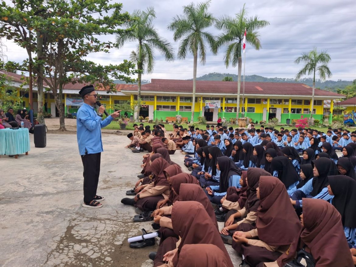 Kepala MTsN 1 Tanah Datar, Neldahayati, menyampaikan harapannya agar 357 siswa madrasah dapat menyimak tausiyah yang disampaikan dengan baik serta mengimplementasikannya dalam kehidupan sehari-hari. (yon)