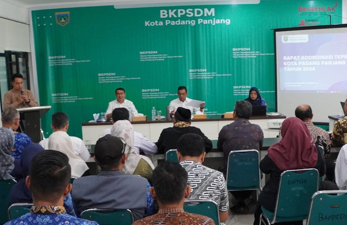 PADANG PANJANG, KP – Pemerintah Kota Padang Panjang terus mengupayakan penanggulangan kemiskinan di kota itu dengan berbagai program. Salah satunya mendiskusikan dengan Tim Koordinasi Penanggulangan Kemiskinan (TKPK), Kamis (19/12) di Ruang Rapat Lantai III Gedung BKPSDM/Bappeda. Rapat TKPK tersebut dibuka Penjabat (Pj) Wali Kota, Sonny Budaya Putra. Hadiri kepala OPD, BUMN, BUMD, Badan Amil Zakat Nasional, camat dan lurah.