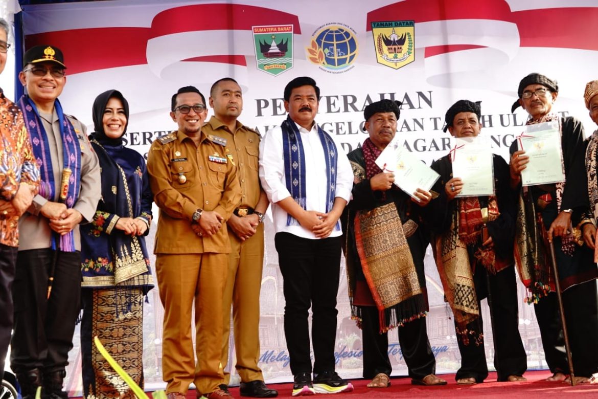 Penyerahan dilakukan Menteri Agraria dan Tata Ruang/Badan Pertanahan Nasional (ATR/BPN), Marsekal TNI (Purn) Hadi Tjahjanto, Selasa sore (10/10) kemarin, di nagari setempat.
