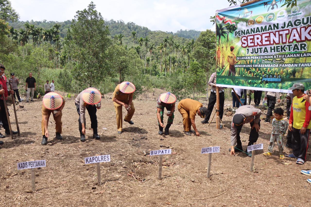 PASAMAN, KP – Polres Pasaman bersama pemkab setempat menggelar program penanaman serentak 1 juta hektare jagung sebagai bagian dari upaya mewujudkan swasembada pangan nasional. Kegiatan ini dilaksanakan di Jorong Tikalak, Nagari Tanjung Beringin Selatan, Kecamatan Lubuk Sikaping, Rabu (22/1).