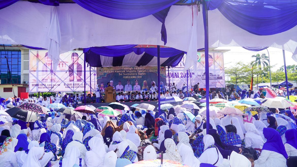 PADANG, KP – Ribuan anggota Badan Kontak Majelis Taklim (BKMT) se-Sumbar hadir di lapangan Apeksi Balai Kota Padang, Minggu (5/11).
