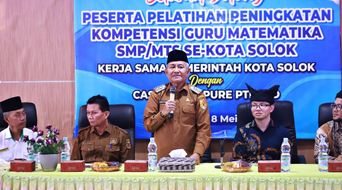 SOLOK, KP — Wakil Wali Kota Solok, Suryadi Nurdal, menekankan pentingnya peningkatan kompetensi guru mengikuti perkembangan teknologi. “Guru adalah pahlawan yang mendidik generasi masa depan, dan mereka harus terus mengembangkan kemampuan,” ujar Suryadi saat membuka “Pelatihan Peningkatan Kompetensi Guru Matematika Kota Solok dalam Optimalisasi Penggunaan Kalkulator Saintifik” yang bekerja sama dengan Casio Singapore Pte. Ltd., Jakarta Representative Office.