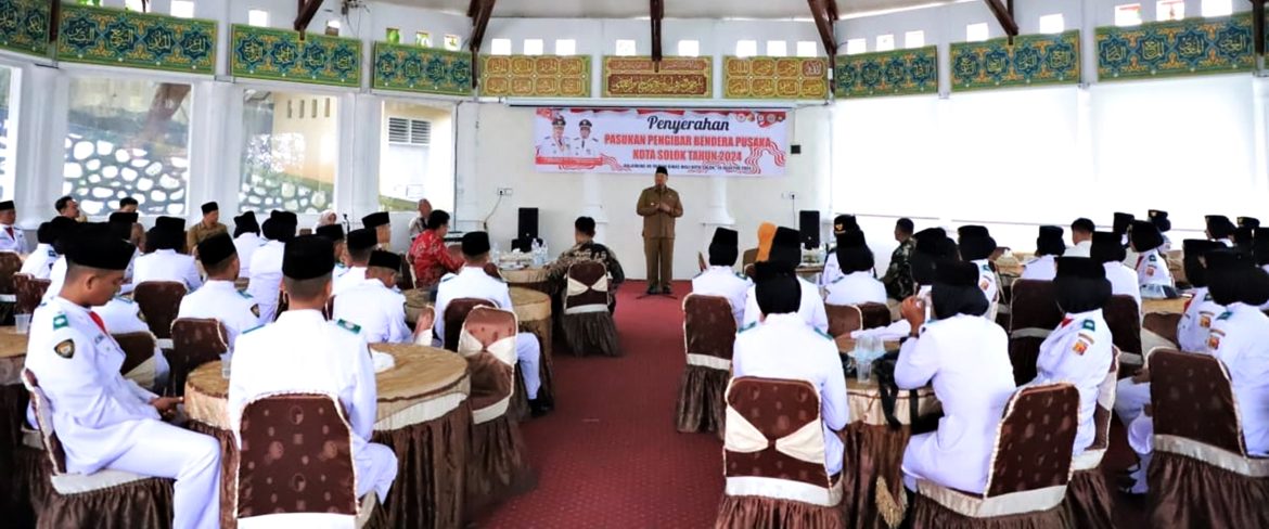 SOLOK, KP – Wali Kota Solok Zul Elfian Umar, menghadiri acara penyerahan Pasukan Pengibar Bendera Pusaka (Paskibraka) Kota Solok Tahun 2024 yang diselenggarakan di Balairung 99 Rumah Dinas Wali Kota, Senin (19/8). Acara ini turut dihadiri Wakapolres Solok Kota, Asisten I Nova Elfino, Kepala Kantor Kesbangpol Kota Solok, Eni Suryani, serta perwakilan dari Purna Paskibraka Indonesia (PPI) Kota Solok.