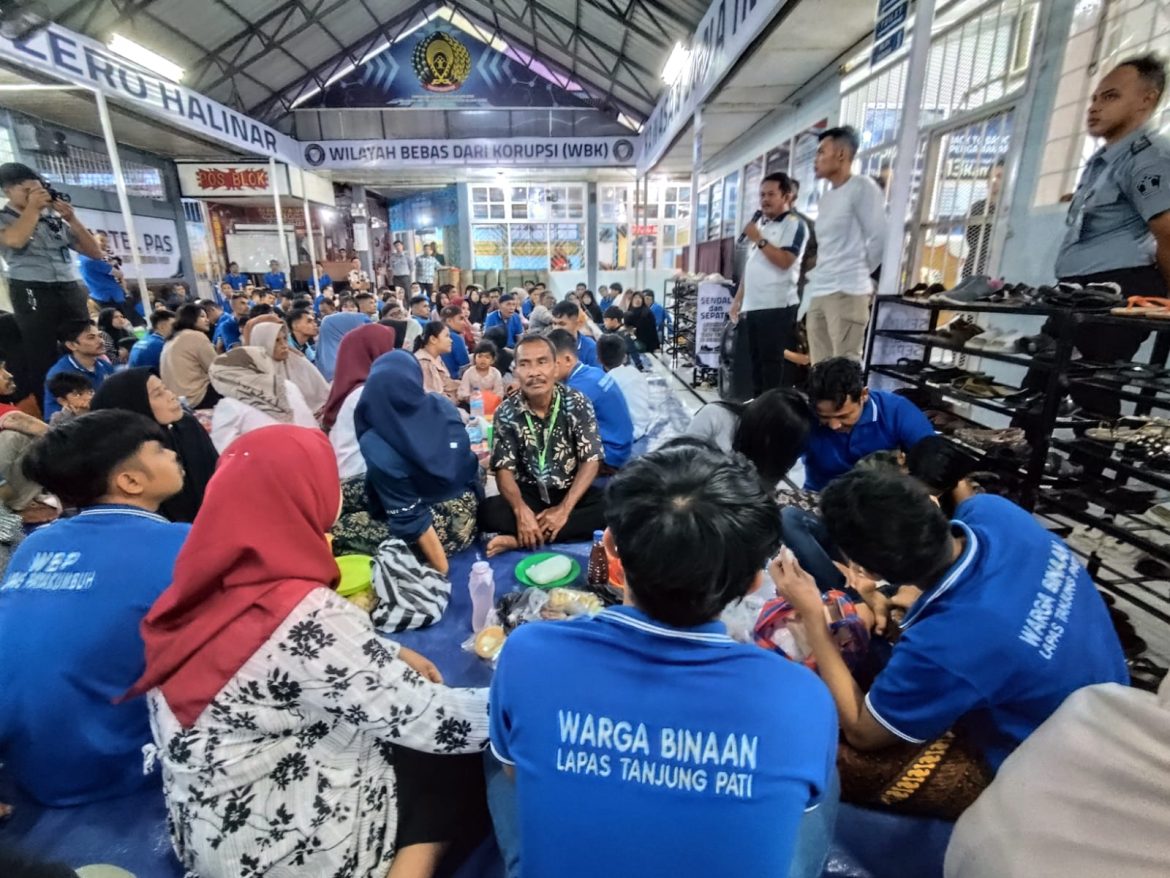 Pantauan di lokasi menunjukkan suasana penuh haru dan kebahagiaan. Warga binaan tampak menikmati hidangan bersama keluarga, berbagi makanan, bahkan saling menyuapi orang terkasih.