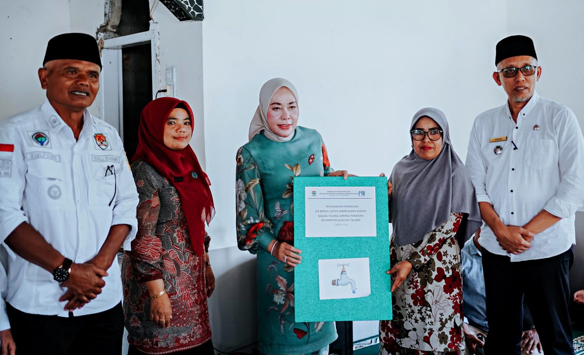 SOLOK, KP – Ketua TP-PKK Kabupaten Solok, Emiko Epyardi Asda, menghadiri kegiatan penyerahan bantuan pemakaian air bersih kepada masyarakat Jorong Panarian, Nagari Talang, Kecamatan Gunung Talang, Kabupaten Solok, baru-baru ini.