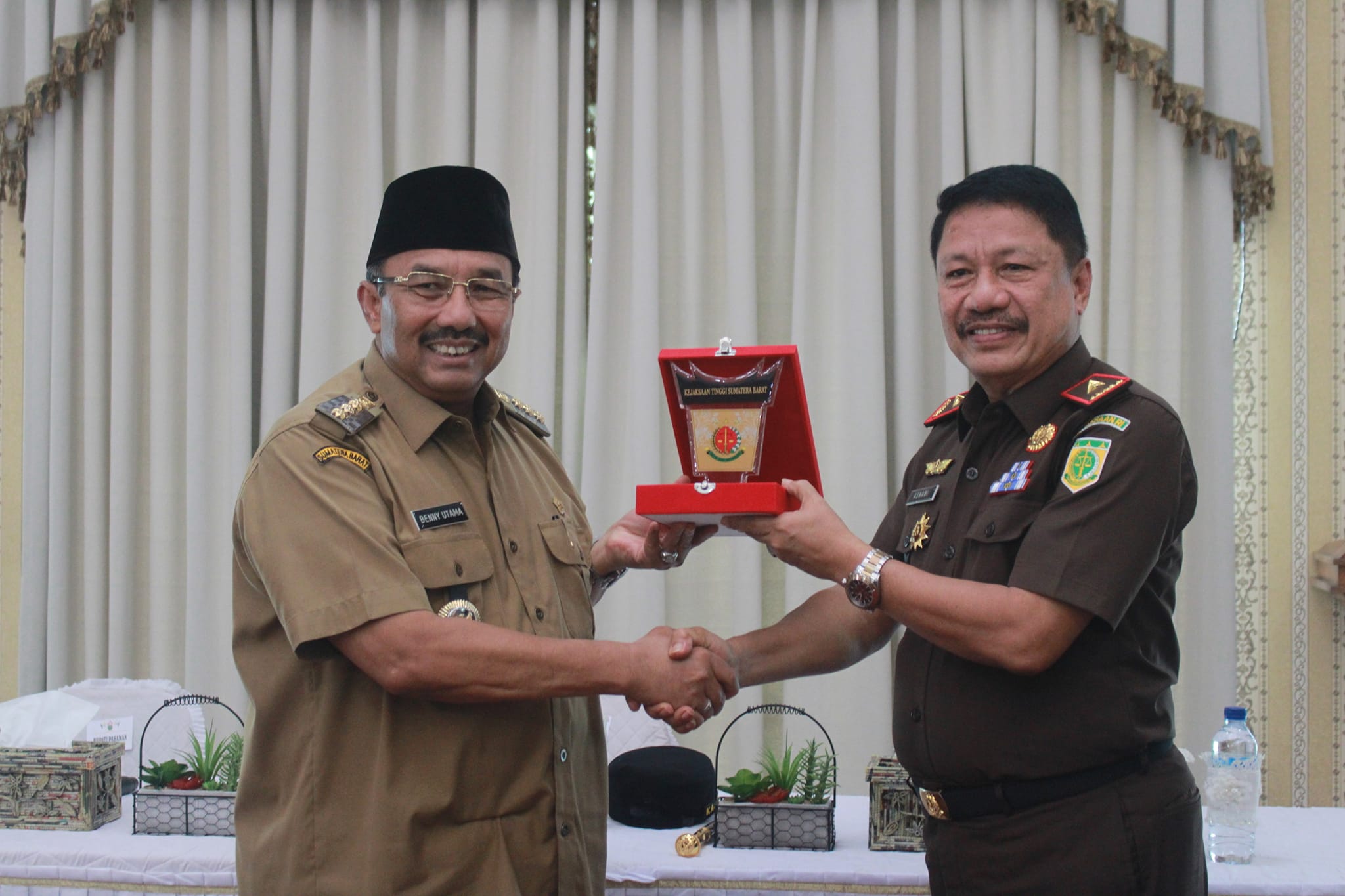 Dalam kesempatan tersebut, Kajati Sumbar menyerahkan plakat Adhyaksa kepada Bupati Pasaman sebagai kenang-kenangan, dan Bupati Benny Utama juga memberikan plakat Lambang Pasaman kepada Kajati Sumbar. (mas)