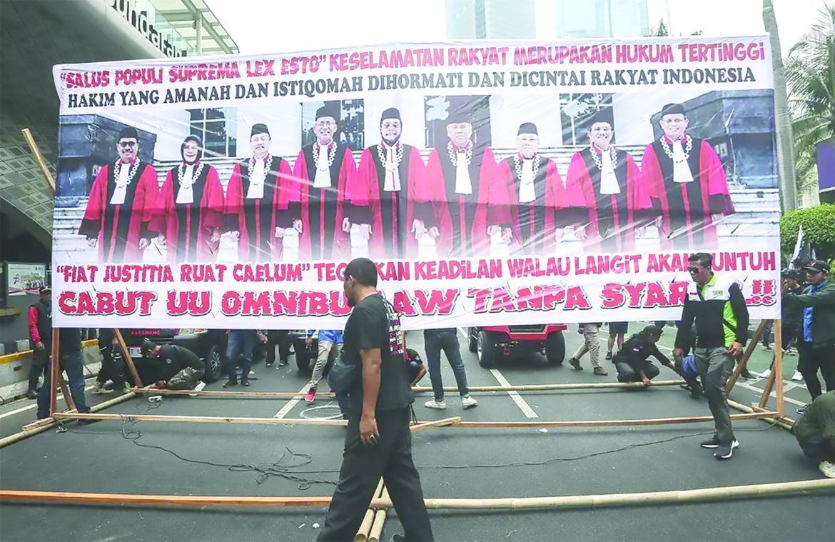 JAKARTA, KP – Mahkamah Konstitusi (MK) menolak gugatan yang diajukan oleh 15 federasi buruh dalam perkara nomor 40/PUU-XXI/2023. Gugatan itu berkaitan dengan Undang-Undang Nomor 6 Tahun 2023 tentang Penetapan Peraturan Pemerintah Pengganti Undang-Undang Nomor 2 Tahun 2022 tentang Cipta Kerja menjadi Undang-Undang.