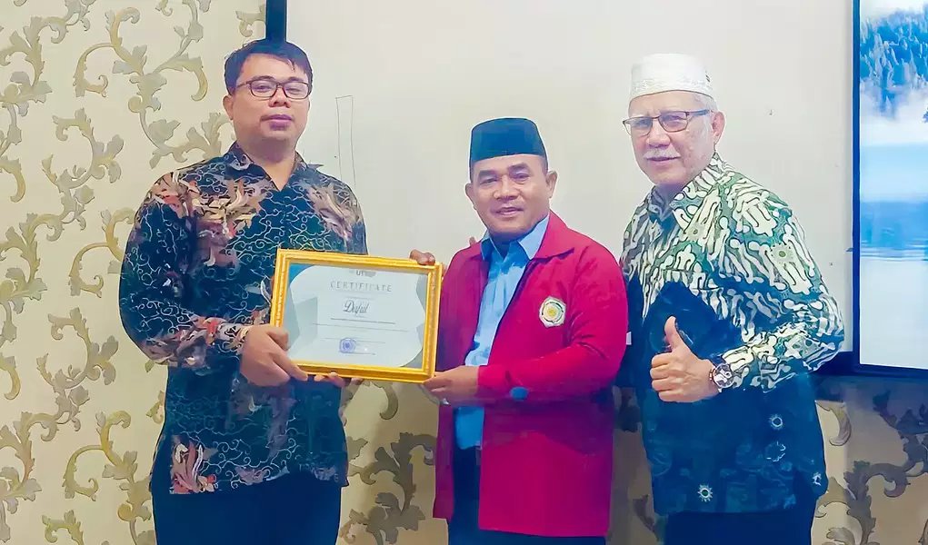PADANG, KP — Mahasiswa Program Doktor Studi Islam Universitas Muhammadiyah Sumatera Barat (UM Sumbar), Dafril Tk. Bandaro, menerima penghargaan sebagai mahasiswa dengan publikasi terbanyak tahun 2025.