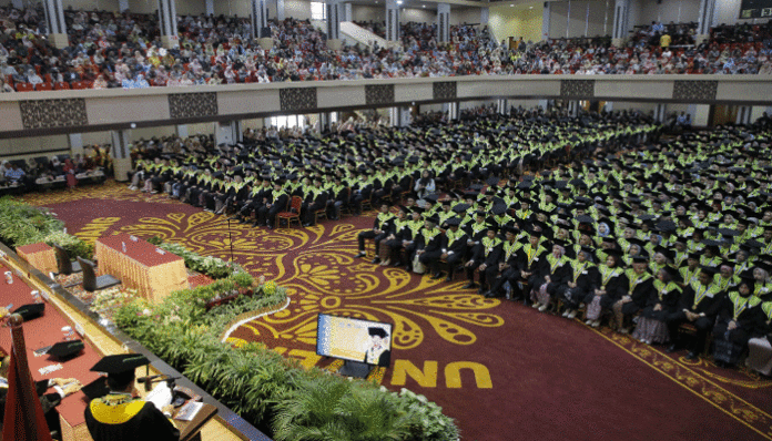 Di hadapan ribuan wisudawan dan wisudawati, Rektor UNP Prof Ganefri menyampaikan amanat terkait transformasi penjaminan mutu pendidikan tinggi dalam menyambut generasi emas Indonesia.