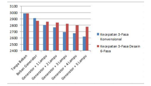 Gambar 1.3 Grafik Pebandingan Kecepatan Motor Induksi 3-Fasa Konvensional dengan Motor Induksi 3-Fasa Desain 6 Fasa Tidak Simetris 1 lapis 6 medan fluks