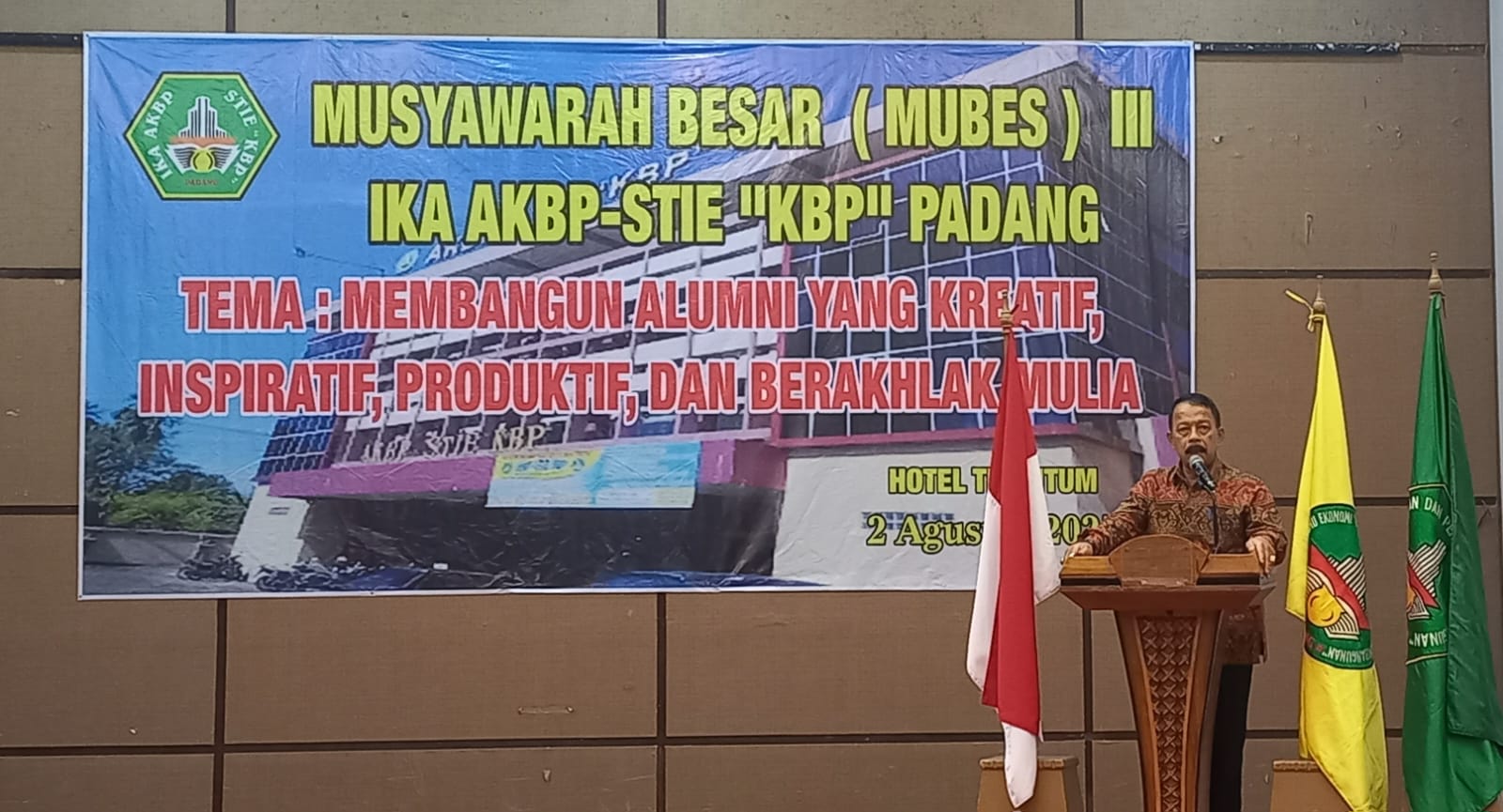 Pada Mubes III IKA AKBP STIE KBP tampak hadir Direktur AKBP Doni Marlius, Ketua Prodi Magister Manajemen STIE KBP Dr. Afriyeni. SE dan Alumni Magister Manajemen STIE KBP H. Yusman Kasim. (nda)