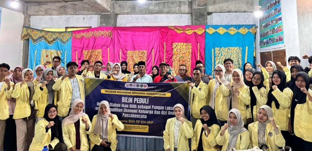 Kegiatan bertajuk ‘Bilih-Peduli: Inovasi Olahan Ikan Bilih sebagai Pangan Lokal melalui Sinergi BEM FIP UNP, TP PKK, dan Kelompok Nelayan untuk Pemulihan Ekonomi Keluarga serta Gizi Anak Usia Dini Pascabencana’ ini dilaksanakan pada 7 hingga 28 Februari 2026.