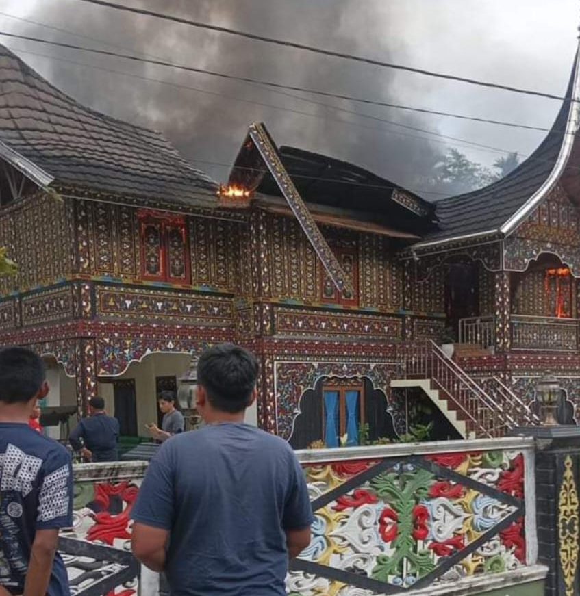LIMAPULUH KOTA, KP – Sebuah Rumah Gadang di Jorong Baliak, Nagari Simpang Sugiran, Kecamatan Guguak, Kabupaten Limapuluh Kota, terbakar Selasa pagi (18/6) sekitar pukul 06.45 WIB. Rumah tersebut milik pensiunan guru Sekolah Dasar (SD) Nurhamidar.