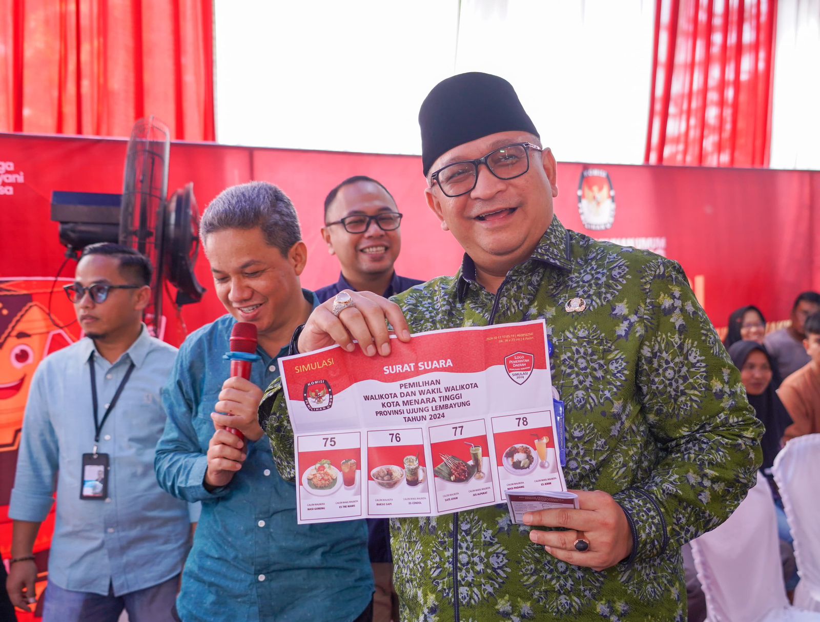 “Simulasi ini nantinya akan kita videokan, dan video tersebut akan kita sebar ke seluruh petugas TPS untuk dijadikan panduan. Simulasi ini sama betul seperti berlangsungnya pemungutan suara di Pilkada nanti. Mulai dari pendaftaran peserta, pengambilan surat suara, pencoblosan surat suara, memasukkan surat suara yang telah dicoblos ke kotak suara, dan mencelupkan jari kelingking ke dalam tinta,” terangnya. (red)