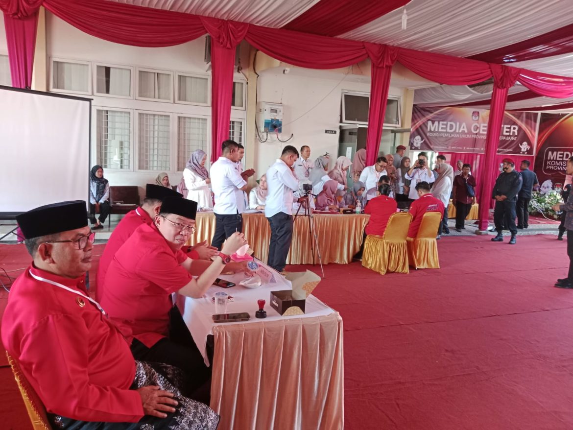 PADANG, KP – Dewan Pimpinan Daerah (DPD) Partai Demokrasi Indonesia Perjuangan (PDIP) Sumbar menyerahkan berkas bakal calon legislatif (bacaleg) untuk DPRD provinsi ke KPU Sumbar, Kamis (11/5). PDIP Sumbar menargetkan satu kursi dari masing-masing delapan daerah pemilihan (dapil) pada pemilu 2024 nanti.
