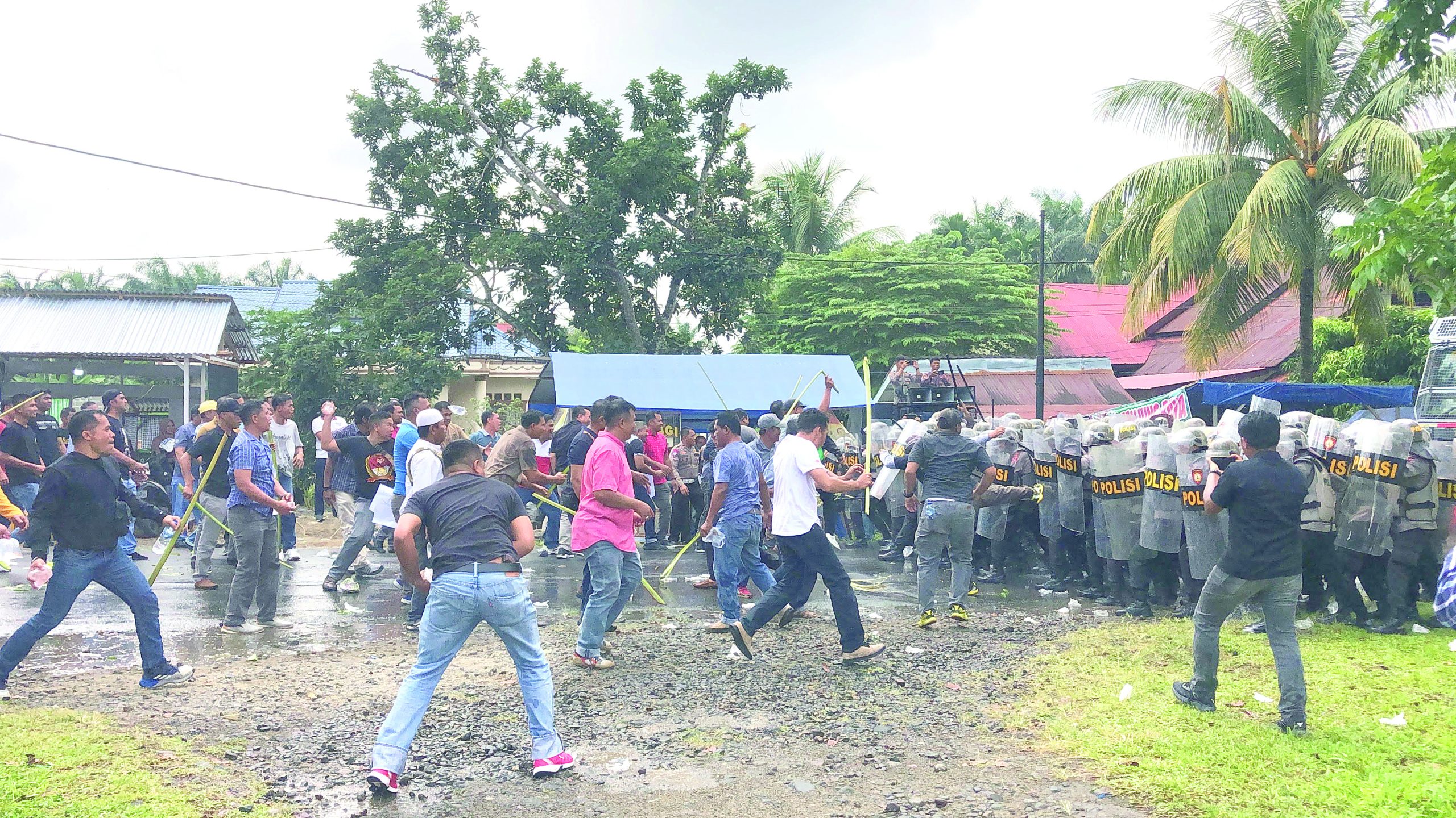 Pada kesempatan itu diperagakan kemungkinan ancaman dan kejadian saat pelaksanaan pemilihan hingga rapat pleno di KPU Pasaman Barat. Kericuhan pun tak bisa dielakkan antara polisi dengan massa yang berunjuk rasa.