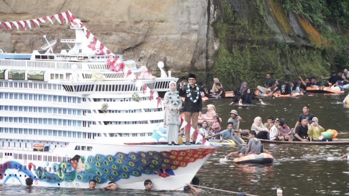 Bupati Limapuluh Kota Safaruddin Dt. Bandaro Rajo bersama anggota DPRD Sumbar Doddy Delfi dan Wakil Ketua DPRD Limapuluh Kota Syamsul Mikar menutup pagelaran tradisi kebanggaan masyarakat Gunung Malintang dan Limapuluh Kota tersebut.